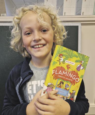 ‘Het boek gaat over een hotel. De flamingo’s komen in het hotel helpen als het hotel in de problemen komt. Er komt in elk deel een speciale gast. Dat zijn in dit boek de koninklijke pinguïns. Ze willen dat alles perfect gaat. Er gaat juist veel verkeerd. Ik vind dat erg leuk.’