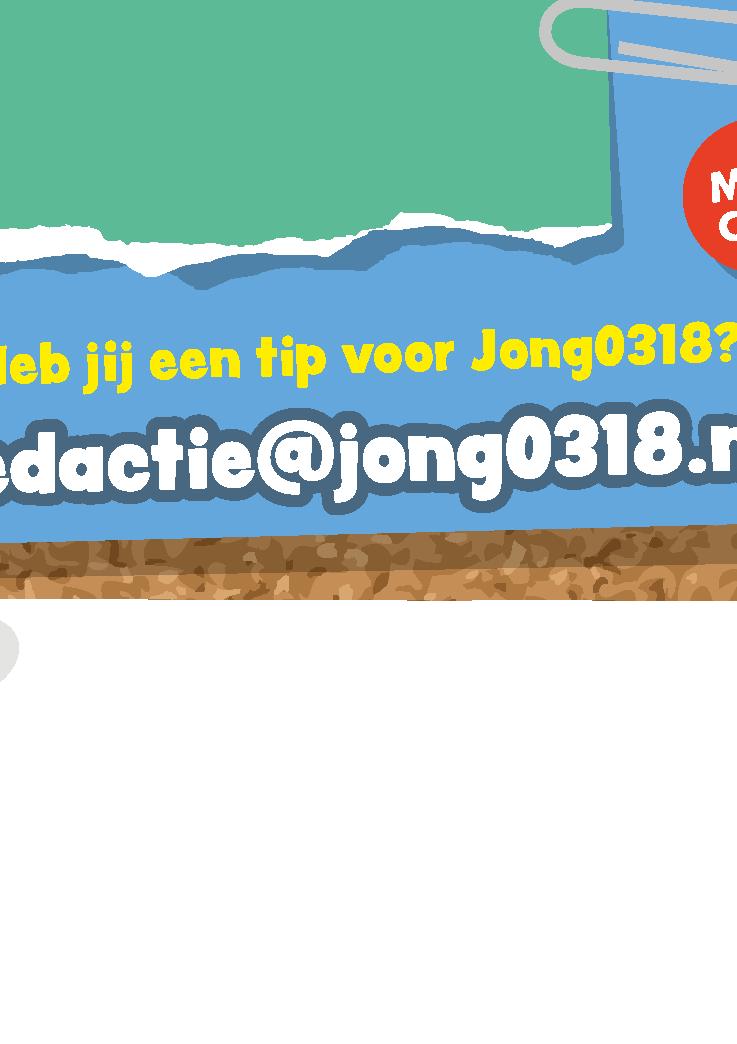 De letters in de gele balk vormen het antwoord. Mail dit antwoord, samen met je voornaam, leeftijd en het telefoonnummer van je ouder(s) of verzorger(s), naar: ANTWOORD@JONG0318.NL