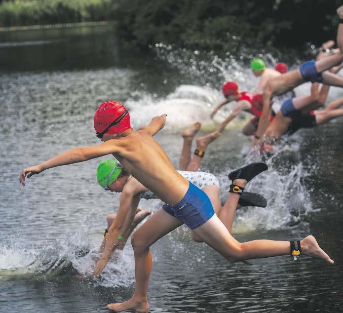Snel op de fiets verder ‘Ik trek mijn schoenen aan en spring snel op mijn fiets. Ik fiets snel weg’, vertelt Nathan verder. Aaron legt uit: ‘De fietsen en droge kleding staan klaar op het gras naast de Surfvijver. Je kunt dan snel door. Ik vind het fietsen na het zwemmen al best zwaar. Ik trap door en denk er niet teveel over na.’