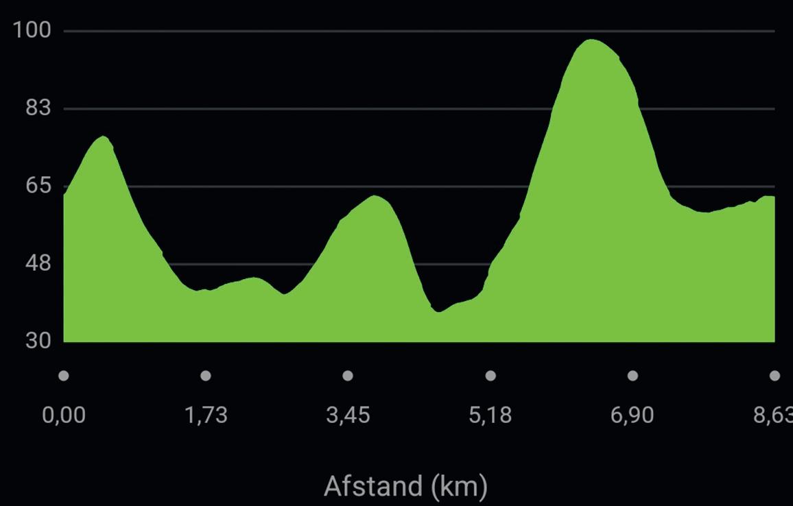 Afstand: 110.5 km = 13 ronden van 8.5 km