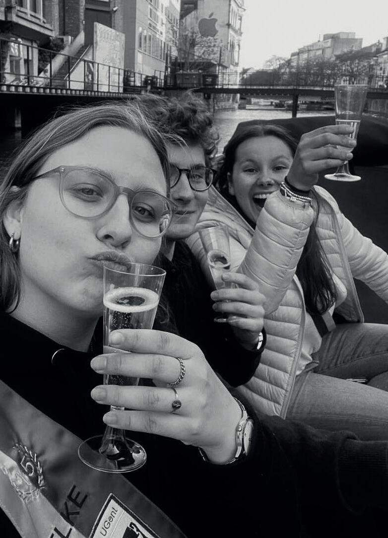 We ontvingen ook Aalsters burgemeester en kamerlid Christoph D’Haese, bezochten de Gentse beluiken en fabrieken, ontdekten dat er in onze eigenste Karel een stadsgids schuilt, hielden meerdere café-avonden en we haalden onze dansbenen meer dan één keer boven. Het mooie weer deed ons picknicken in het Citadelpark en in de laatste week gaven we CDS een lesje in debatteren. Het semester werd in schoonheid afgesloten op ons eindetentje.