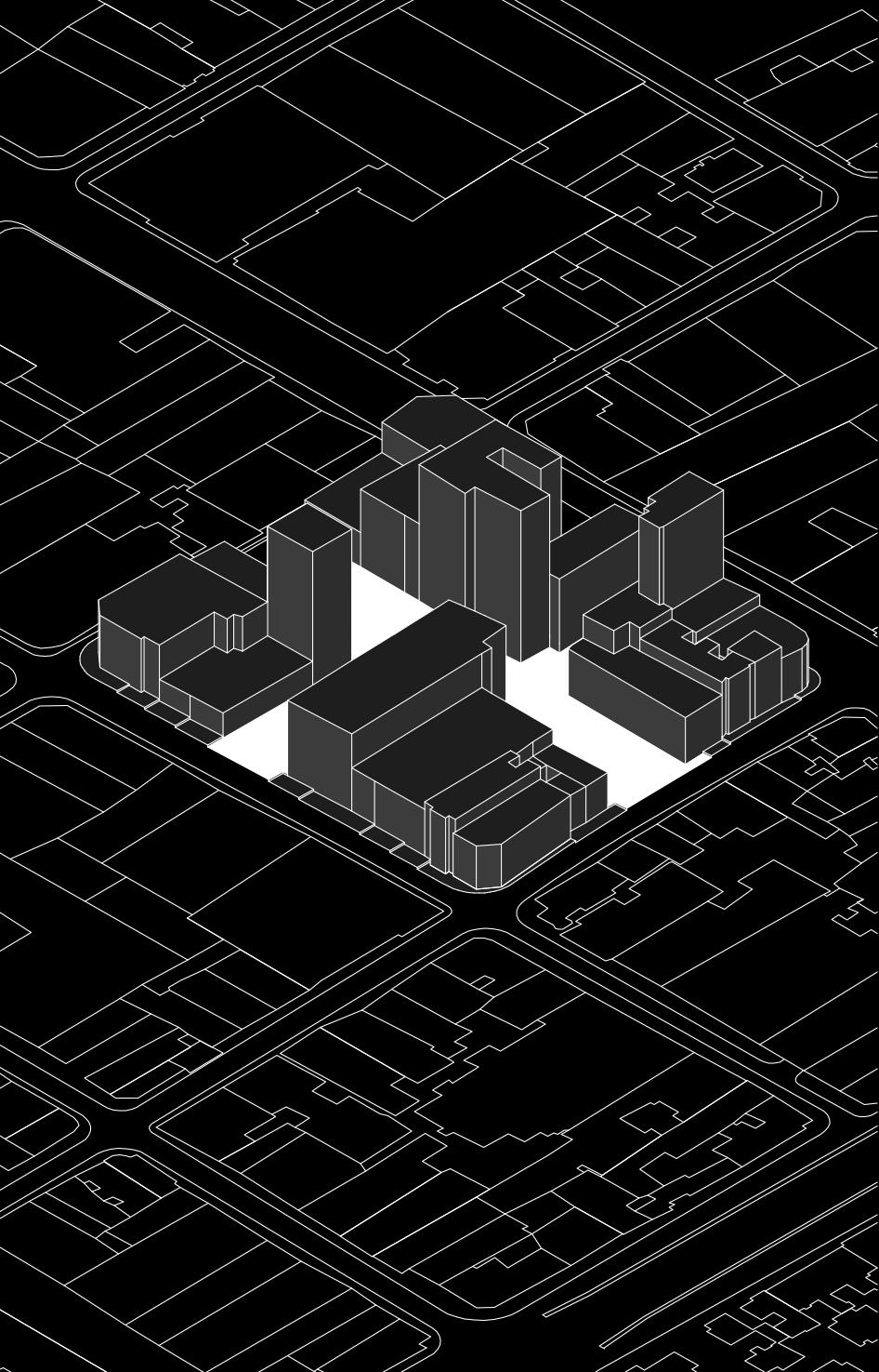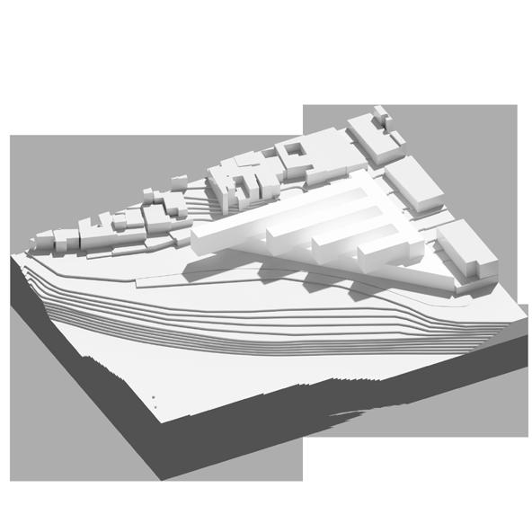 architecture and the urban spaces. So, we indowntown to free occupied plots to open pedestrian building is proposed, there its architecture is a tool to develop a building that adapts to its irreguits surrounding spaces.