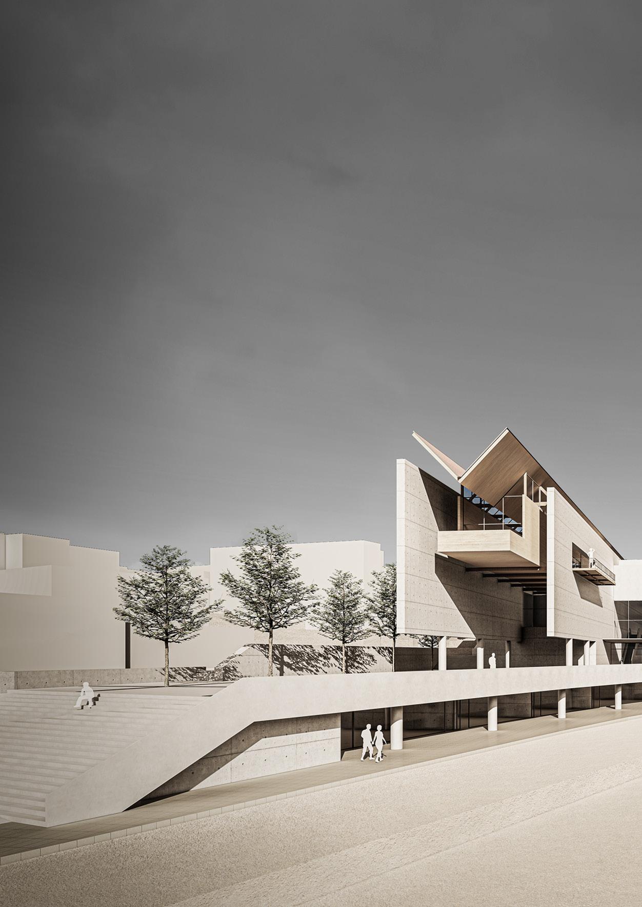 The Art Center concept allows to adapt to the irregular plot where it is located, the building is composed by the main nave that distribute to the secondary galleries. The galleries are covered by different roof type to offer different spaces for a variety of uses. The V shaped roof and selected finishing material are used for a traditional aspect of the building.