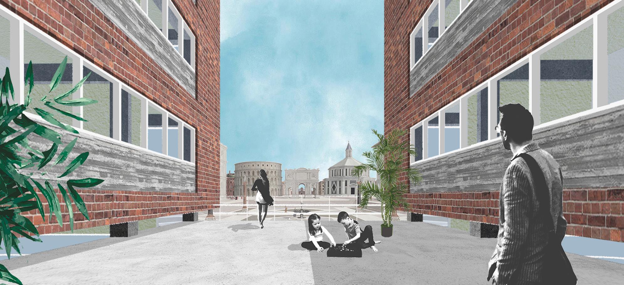 The building apartment units are separated to create social spaces for the residents and allow adequate ventilation and natural illumination for each apartment. Each terrace is heading to the public town square.