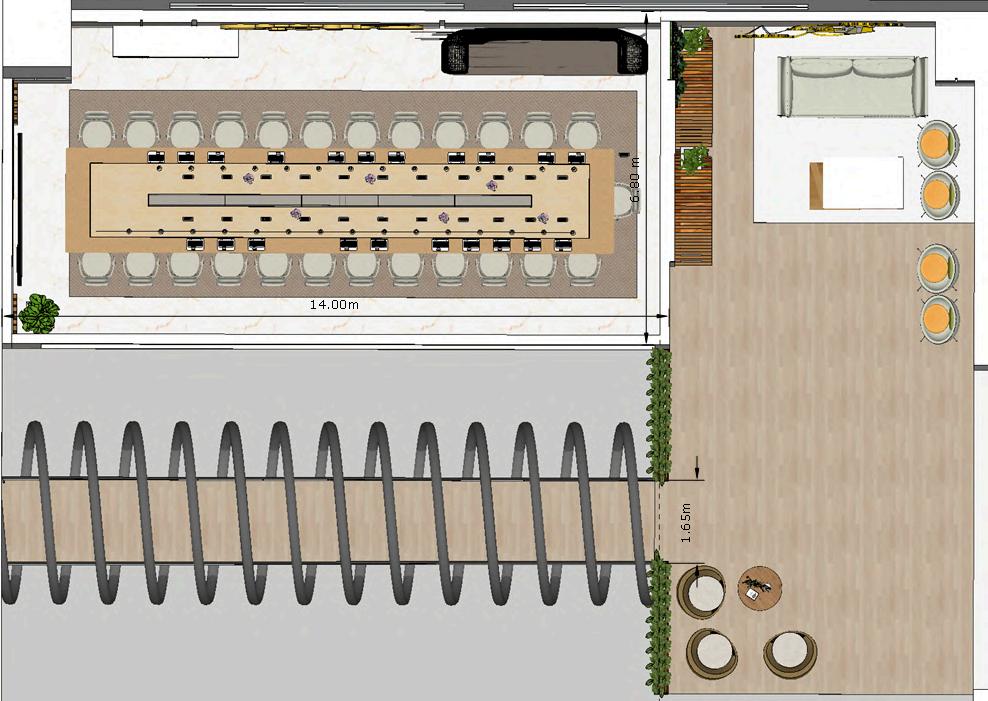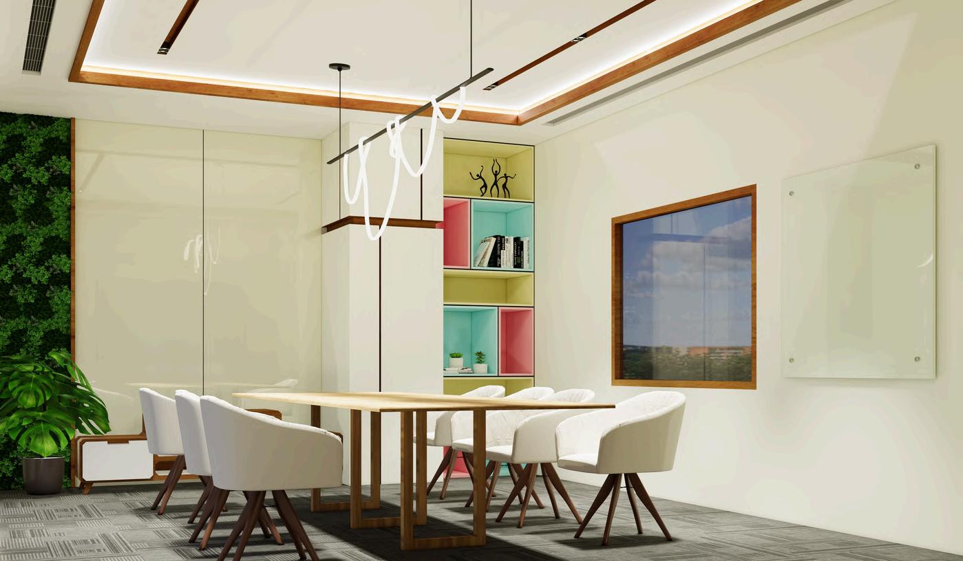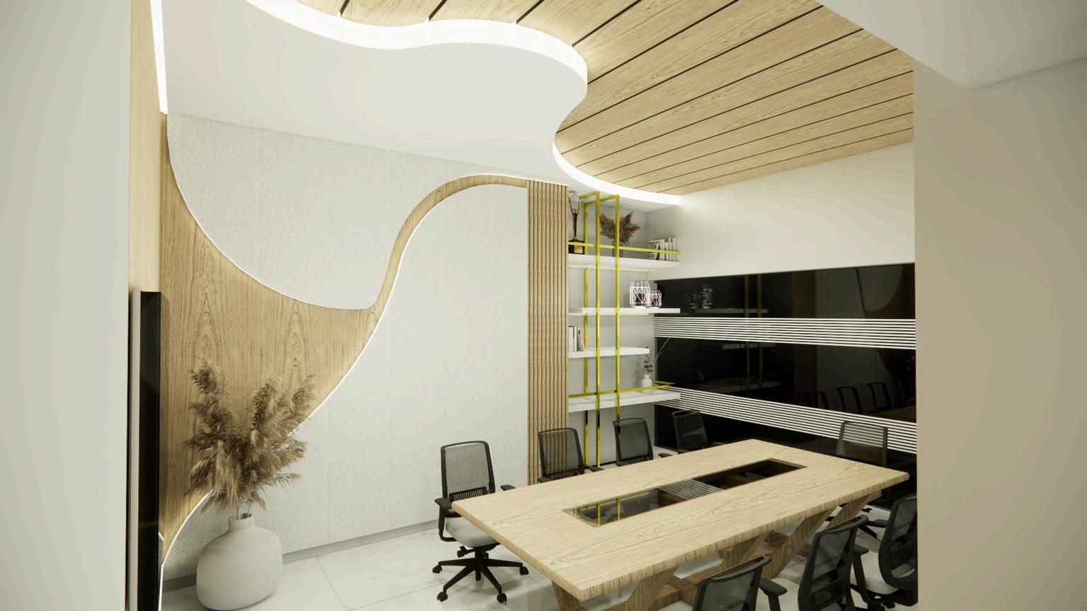 The conference room interior balances functionality and aesthetics, with the touch of warmth, creating an environment that fosters collaboration and effective communication.