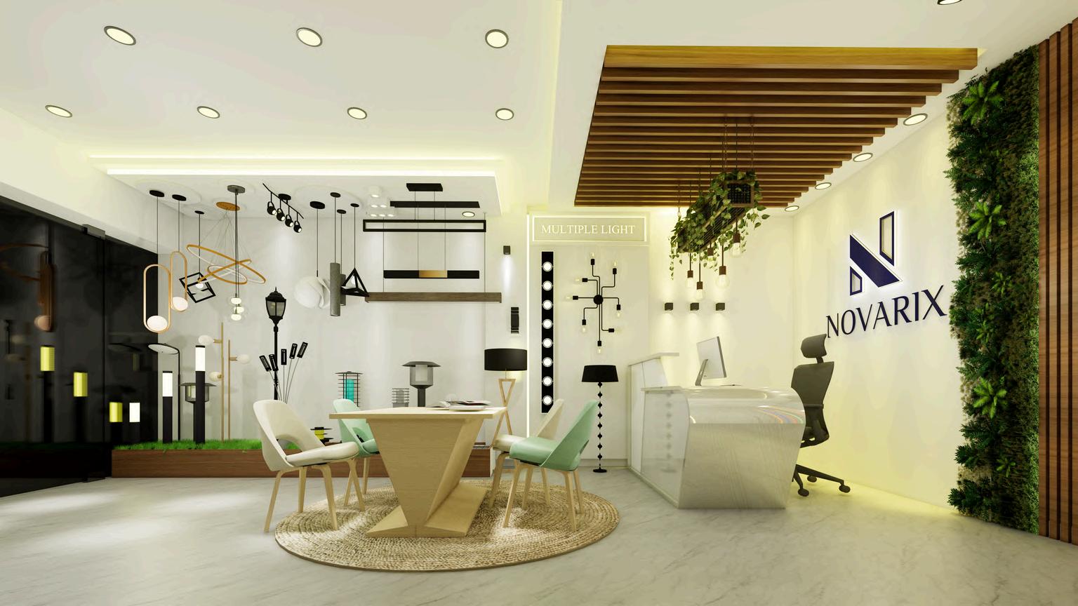A lighting shop interior is designed to showcase a variety of lighting fixtures, create an inviting atmosphere for customers and highlight the beauty and functionality of various lighting options.