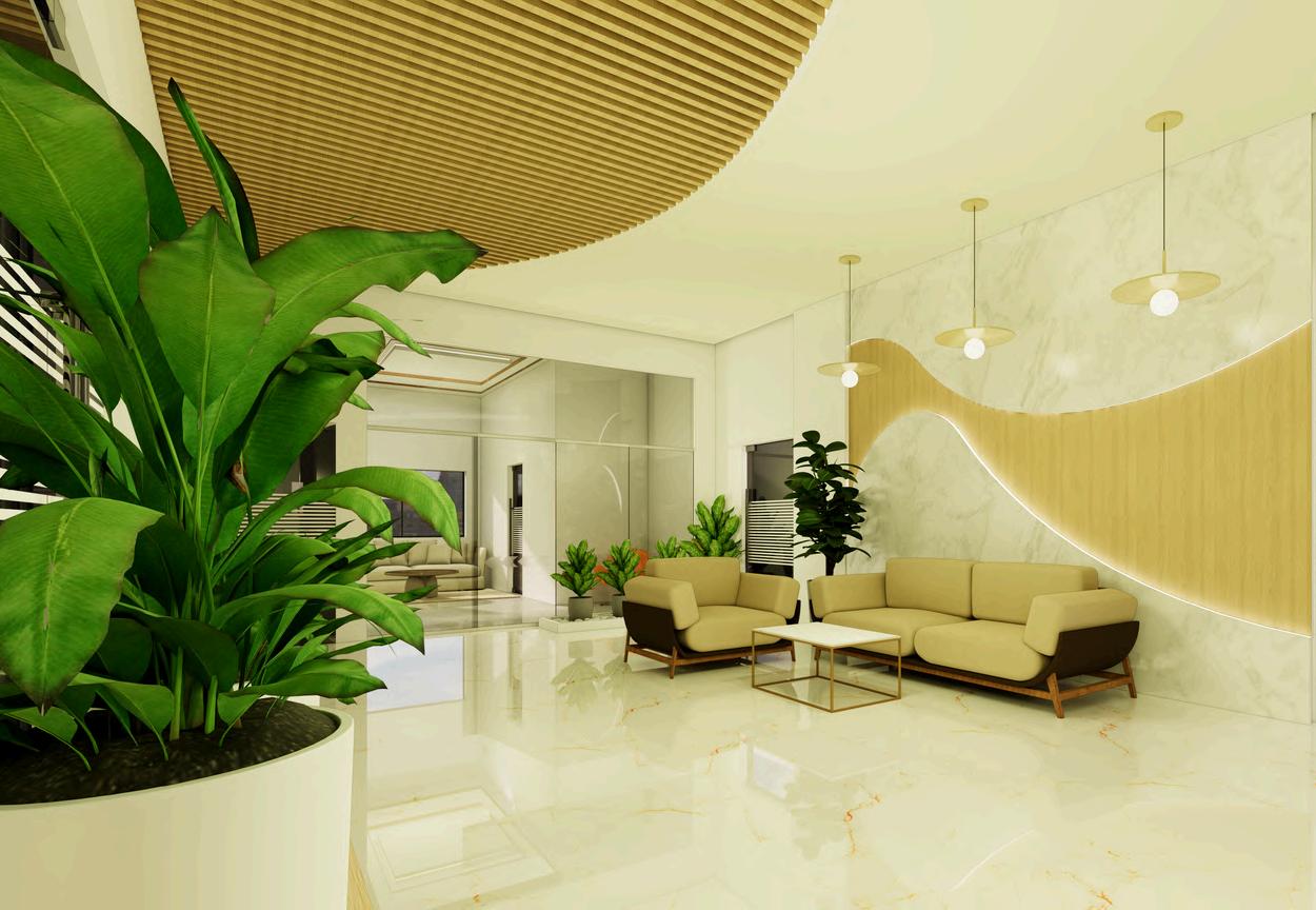 The design is typically open and well-organized to facilitate movement. A soothing and cohesive color palette is often used, featuring neutral tones like beige, gray, or soft pastels, accented with bolder colors to create visual interest and enhancingthevisitorsexperience.