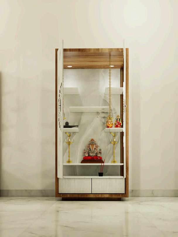 Pooja room is designed to foster a sense of peace, devotion, and connectiontospirituality,servingas