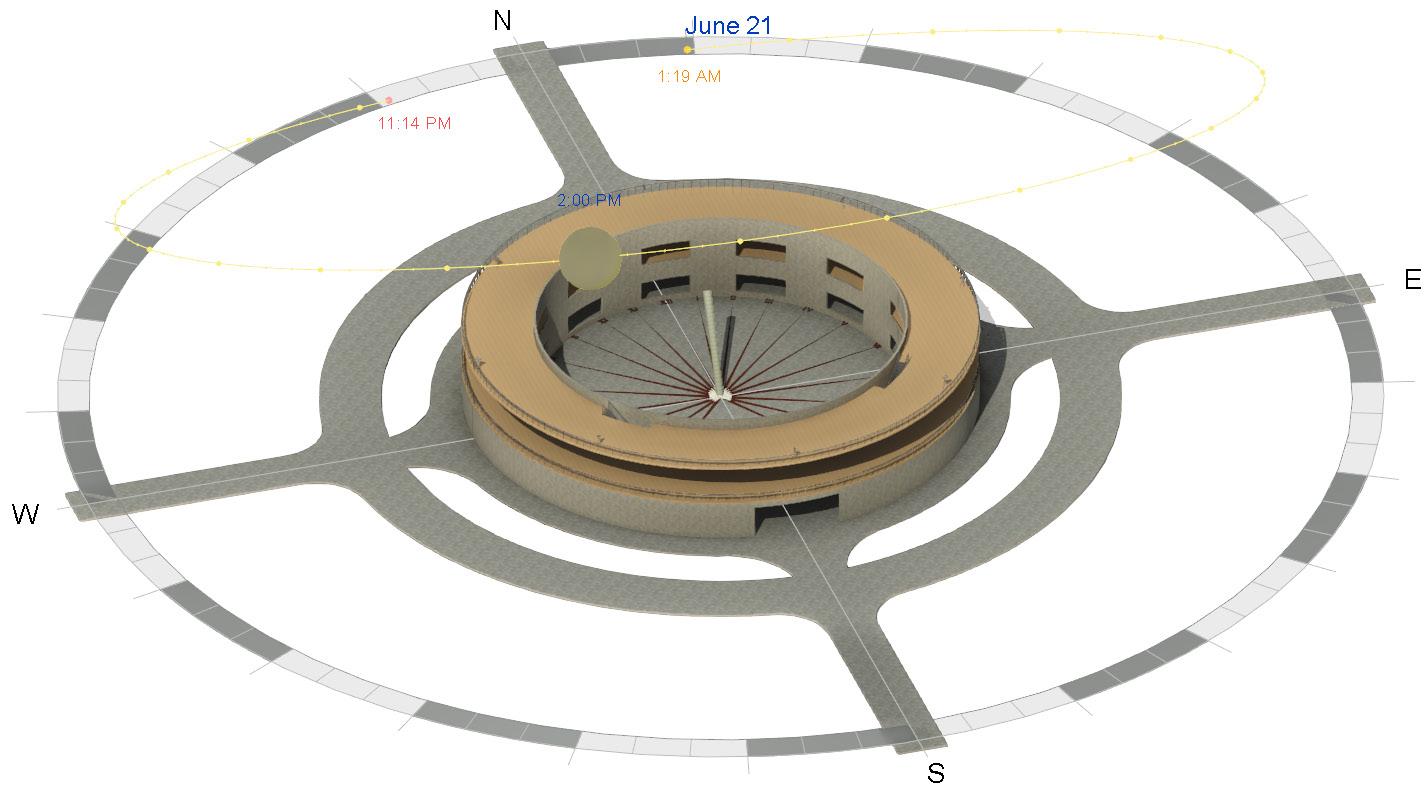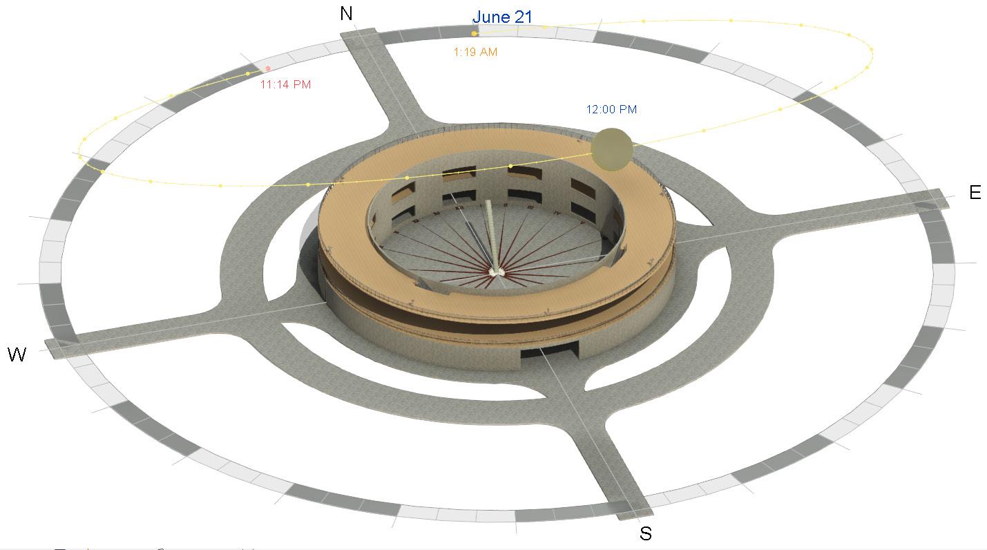 My solution to bring these two islands back together was to create a sundial that both islands could read so their time read the same thing, compared to being 21 hours apart. I used Autodesk Revit to design a circular building that would function as a meeting area for people, as well as it displays a functioning sundial in the middle.