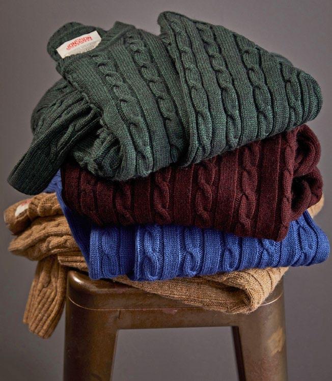 Fully fashioned 50% wool and 50% acrylic blend Cable Knit Jersey available in a variety of colours, a timeless and sophisticated jersey that locks in warmth.