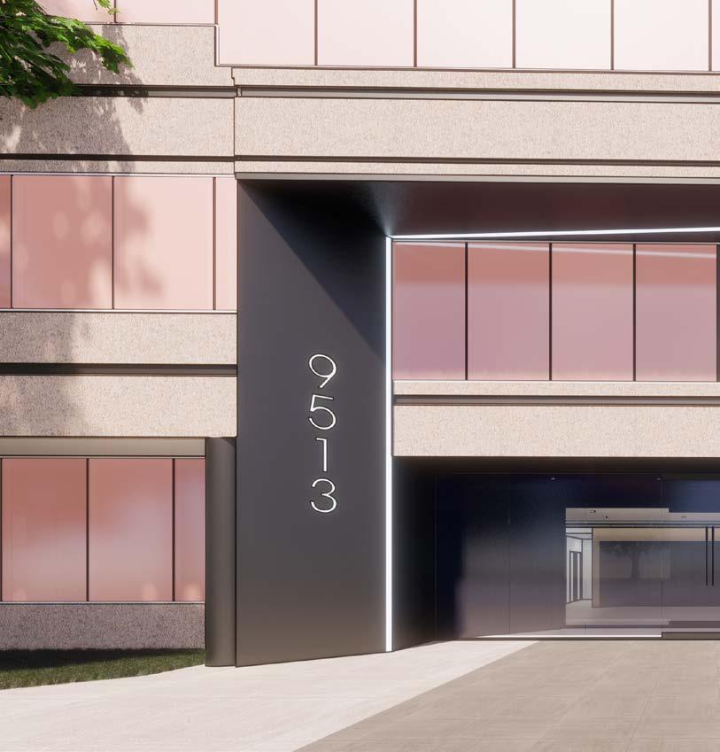 Detailing a similar entry at the back (west entry) of the building was equally as crucial. Schematic renders show a paper-thin entry canopy with similar design language of the recessed linear LED light beaming across the vertical and horizontal planes. Details developed in DD and CD helped translate the schematic design into a set of buildable details.