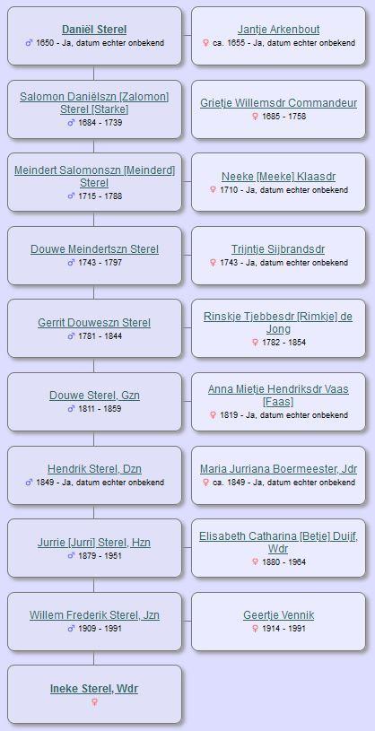 Dit is de eerste generatie waarvan de kinderen in Amsterdam geboren werden. De voorouders van Hendrik waren van Terschelling geboortig. Hendrik was eerst wijnkopersknecht, maar later ingeschreven als werkman. Het huwelijk tussen Hendrik en Maria wordt op 11 juli 1877 gesloten Zij kregen minstens drie kinderen: Jurrie, Tjebbe en Hendrika.