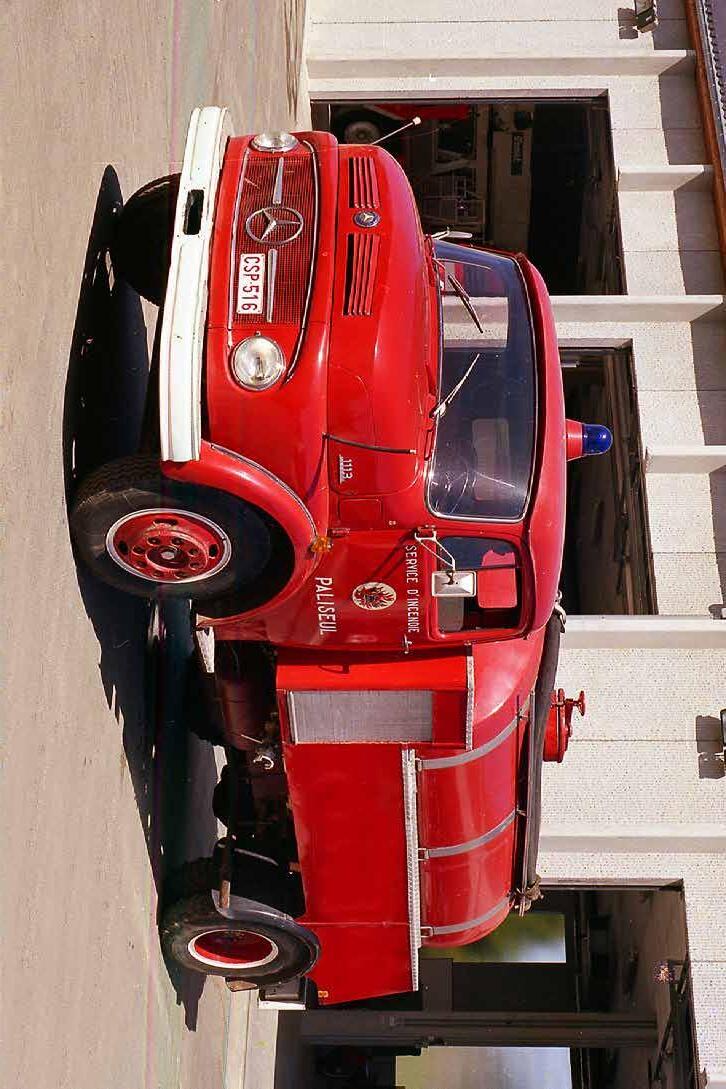 Nog een eigen aankoop van Paliseul: deze Mercedes LAF1113, door Somati geleverd en ook uitgerust met een Bachertpomp). Deze 4x4-bluswagen moest het gebrek aan terreinvaardigheid van de EPR1T opvangen en kwam in 1976 in dienst.