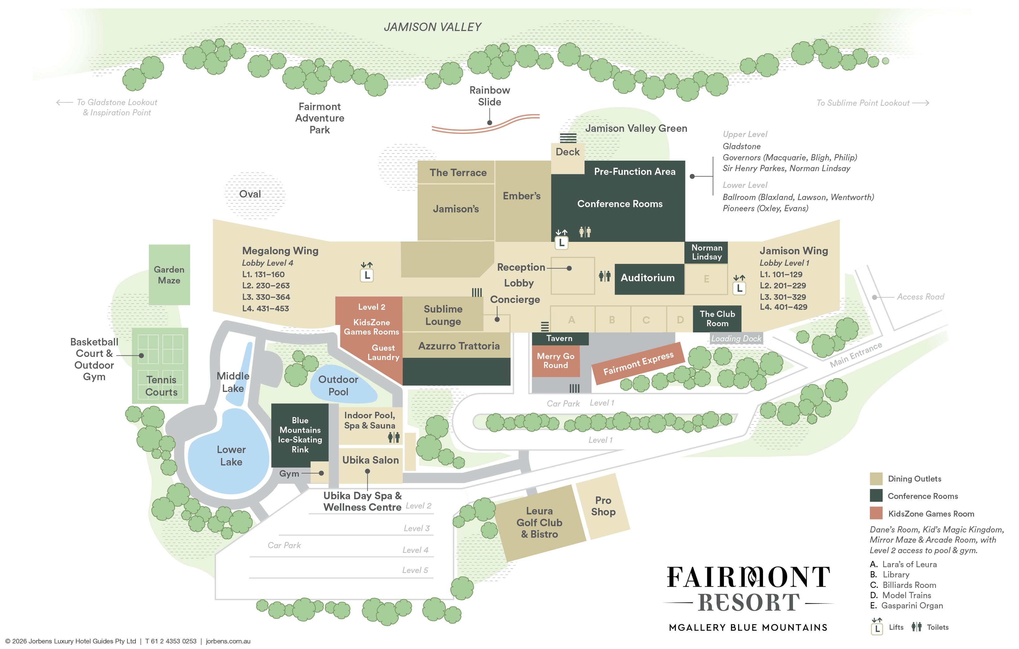 Located in the UNESCO World Heritage listed area, Fairmont Resort Blue Mountains MGallery is 90 minutes west of Sydney and features 224 comfortable rooms & suites and 23 flexible event spaces. The resort includes two swimming pools, outdoor recreation, KidsZone, ice skating, multiple restaurants and an award-winning whiskey bar. Enjoy scenic walking tracks, golf at the adjacent Leura Golf Course and explore the nearby charming villages of Leura and Katoomba.