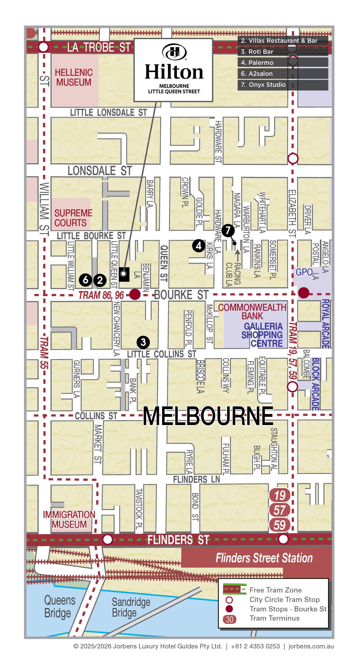 We’re located in the centre of Melbourne and only one tram stop from Southern Cross Station and Bourke Street Mall.