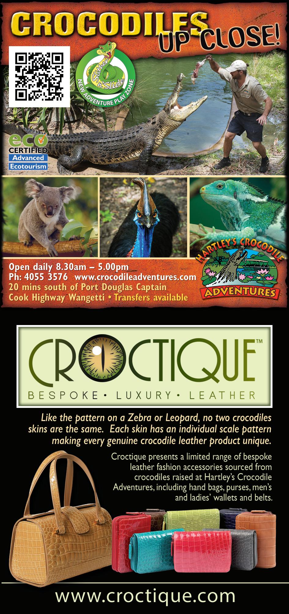 ‘Zootastic 5’ 9.30am and 1.30pm daily, allows VIP guests to pat, hold and/or feed native and exotic animals including wombats, koalas and cassowaries; bonus Koala holding photo. Pole feed a Hartley’s Giant Saltwater Croc with Keeper guidance in our ‘Big Croc Feed’.