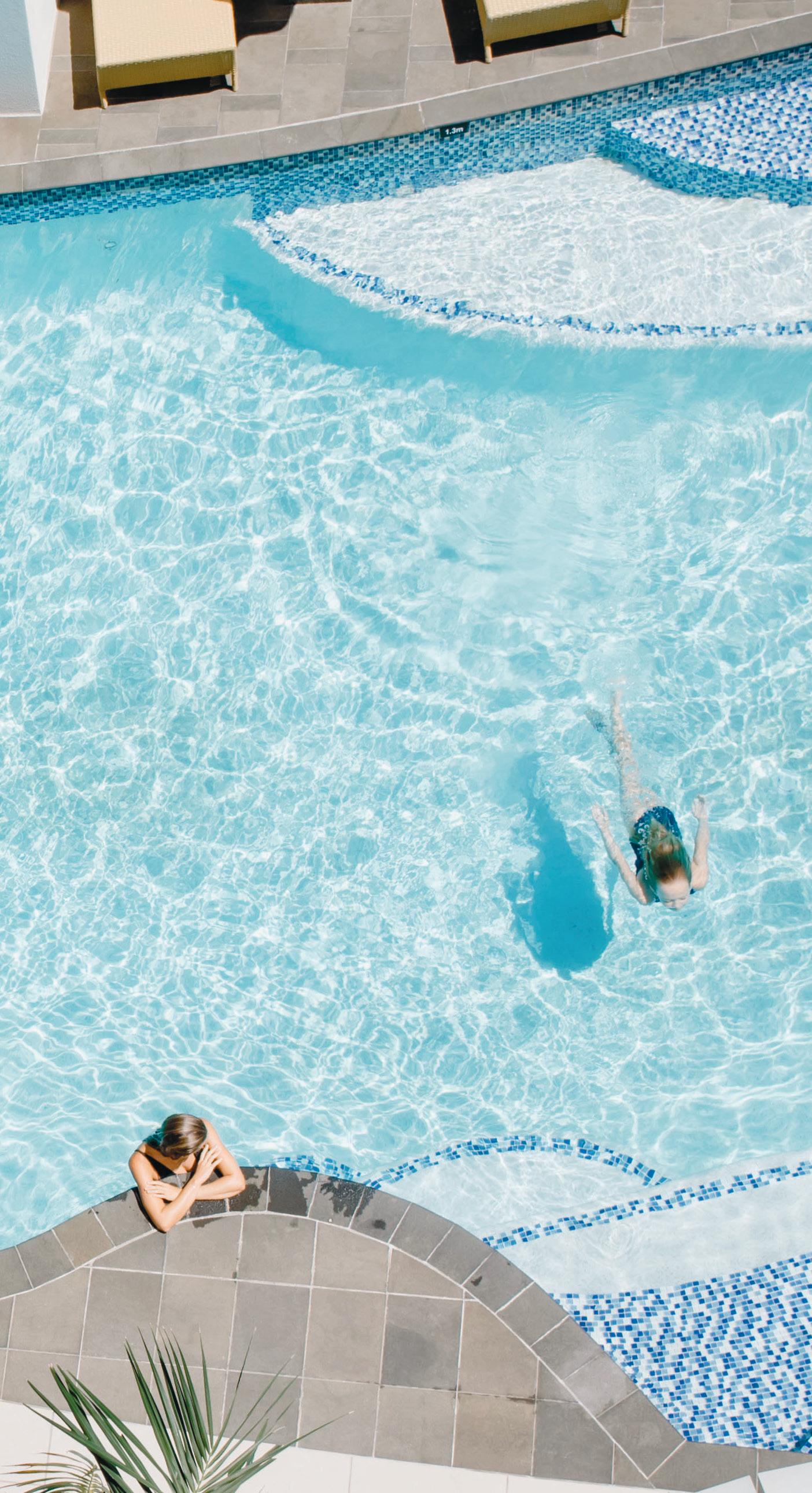 The pool deck has a giant outdoor heated spa, a heated glass bottom lap pool and a large resort pool with children’s wading area for your enjoyment.