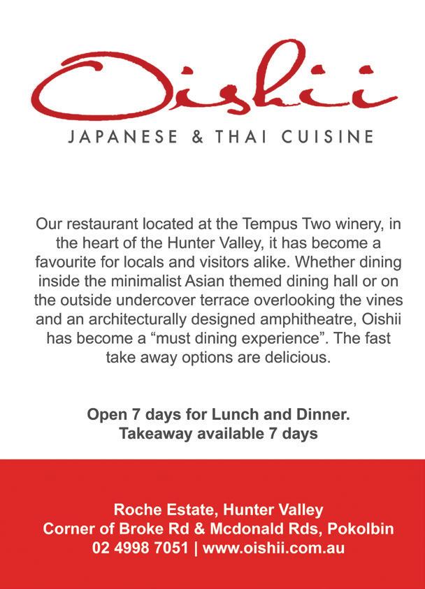 Located at the Tempus Two winery, in the heart of the Hunter Valley, Oishii is a favourite for locals and visitors alike. Whether dining inside the minimalist Asian themed dining hall or on the outside undercover terrace overlooking the vines and an architecturally designed ampitheatre, Oishii has become a ‘must dining experience’.