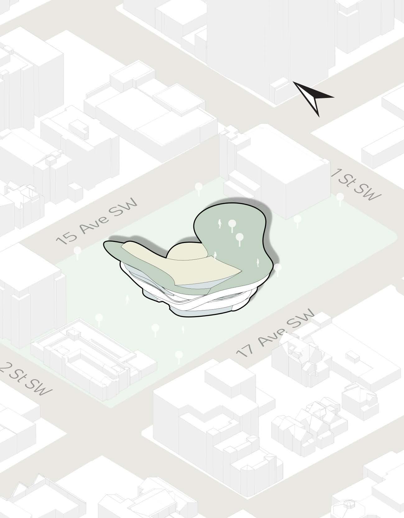 L’objectif de ce projet est de remettre en question l’organisation conventionnelle de l’espace public et privé, tout en abordant des problèmes urbains spécifiques à la ville de Calgary et à la zone locale du Beltline.