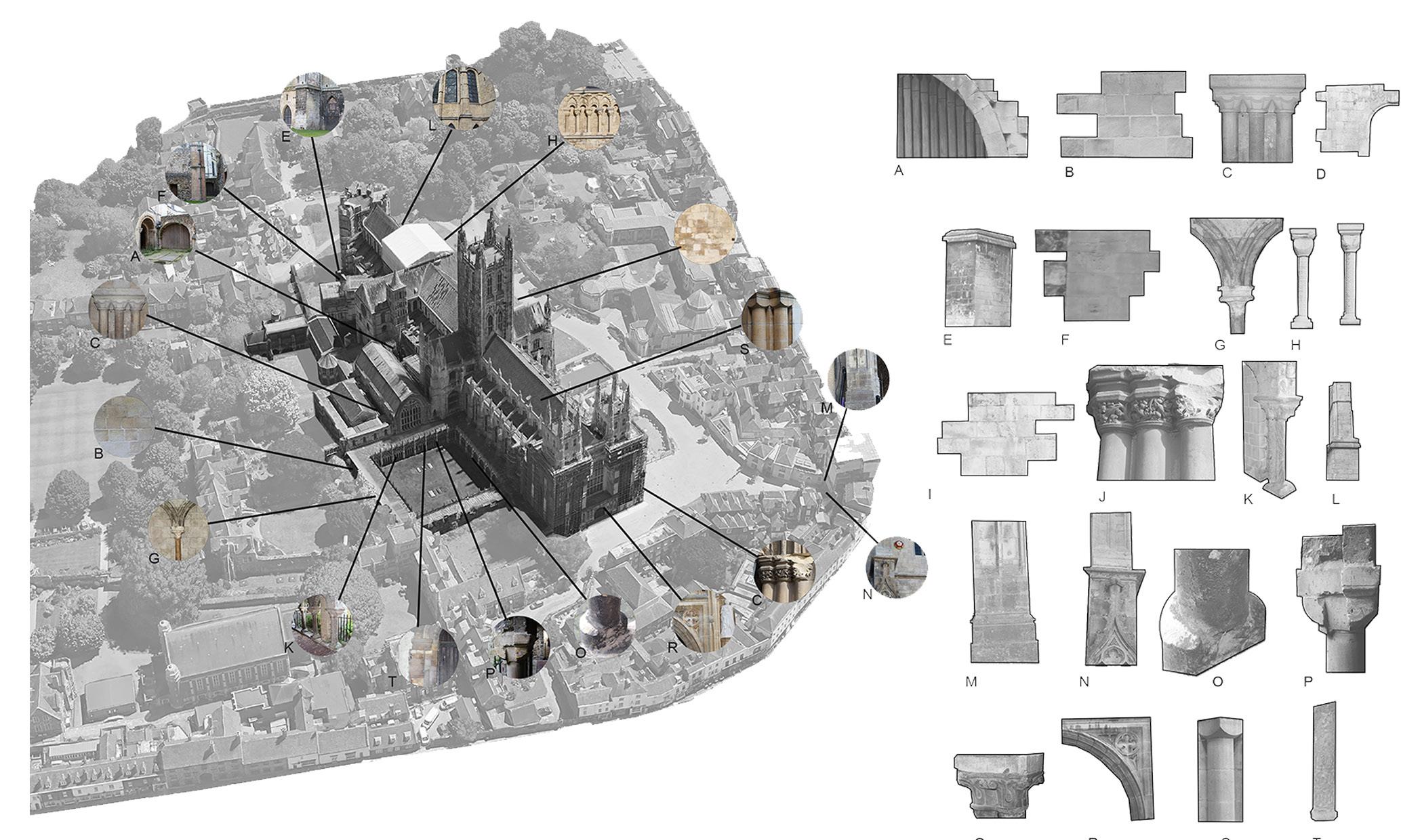 2. As the ribbon travels through the city it tears through the urban fabric city uncovering and collecting lost fragments as symbolic shards that reflect Canterbury’s identity.