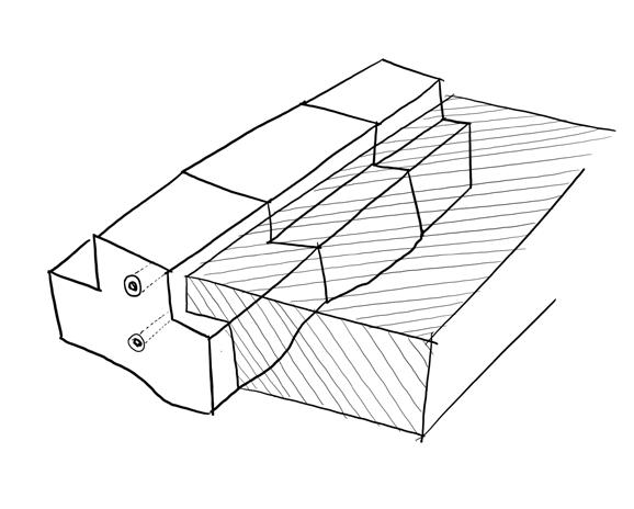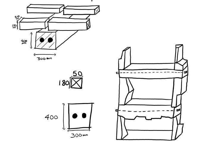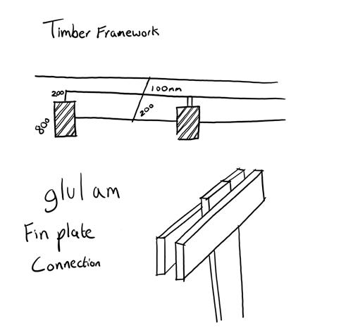 Each sketch represents a step in this process from the early conceptual diagrams mapping out the column grid and floor build ups, to more detailed connection drawings examining the stone to timber connections.