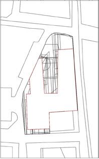 The floor framework was developed in a similar manner. The site’s historic outlines were overlaid once again; however, only the areas covered by the current floor plate were used. From these intersecting regions, the resulting shapes were extracted to generate the framework of each floor, shaped to each floors massing, as seen in the bottom right of the page this process.