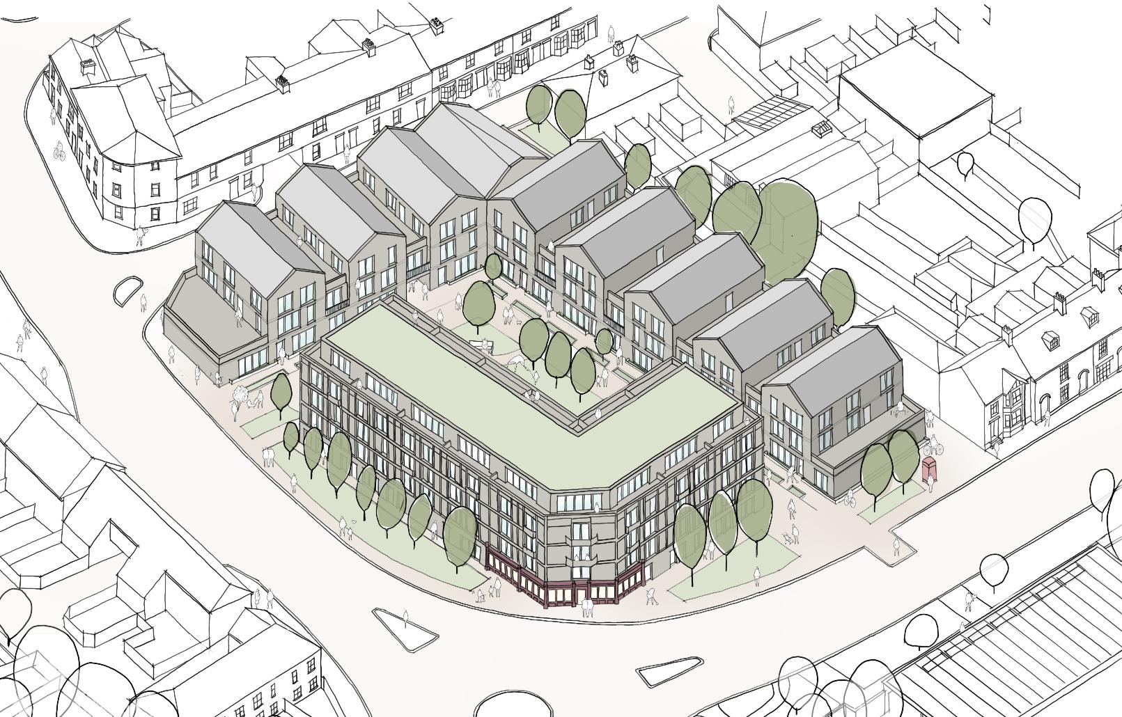 The Brief for this project was to create a residential masterplan for a community of home-based workers, responding to the post-pandemic shift toward working from home. Situated on a corner plot within Canterbury currently a car park and between two universities.