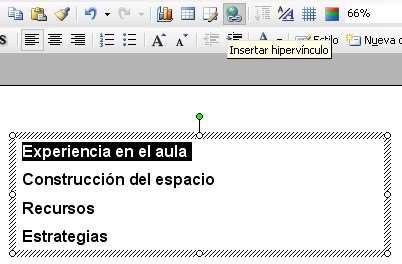 Un hipervínculo puede ser utilizado parair a ubicaciones diferentes: a un archivo, a un sitio web, a otra diapositiva. El origen puede ser cualquier objeto: un texto, una imagen externa, una forma, etc. Es necesario seleccionarlo y accionar el botón Insertar hipervínculo que se encuentra en la Barra estándar.