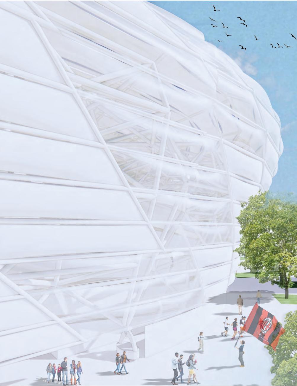 Ac Milan and Inter Milan have shared a stadium for the last 70 years and that’s not going to change anytime time soon. With the new stadium being built and planning on the two teams playing side by side again, I recognized this as not a challenge but a golden opportunity. The game of futbol is one of the most beautiful in the world if not the most beautiful and I want the people of milan to focus on that more than the fact they share a stadium with their rival. Using a modern soccer ball, I noticed how it was stitched together and I thought what better way to show the love of the sport. The stadium has a circular ramp that acts as a circulation method and relates to the stitching of a ball as well as wrapping the stadium in a light weight etfe skin that provides plenty of light inside and to the field.