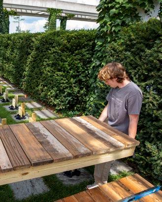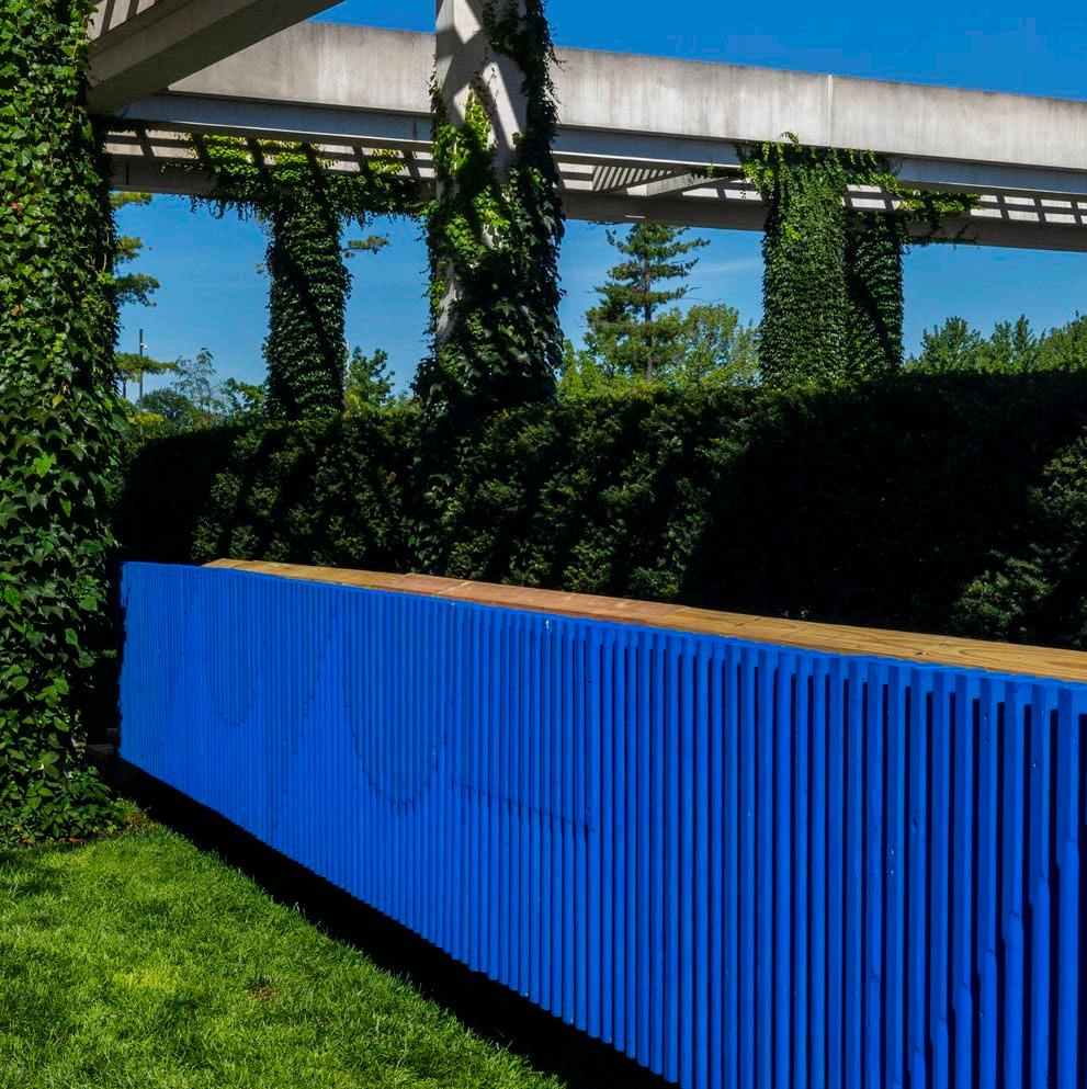 “In juxtaposition to the weighty permanence of the concrete structure, this new boardwalk is lightweight and temporary in its materiality, primarily constructed from discarded lumber salvaged from construction sites.