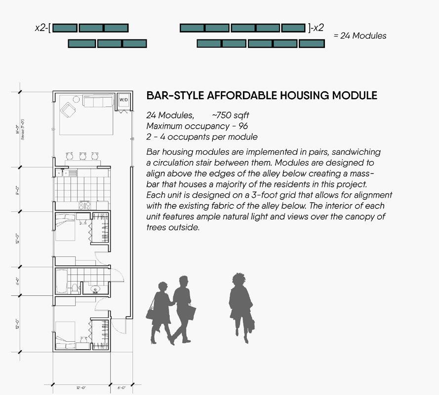 Through the densification and commodification of the alley, Los Angelinos are provided with a high-density urban fabric. This enriches the existing neighborhood with a vibrant “third place” for pedestrians and residents alike.