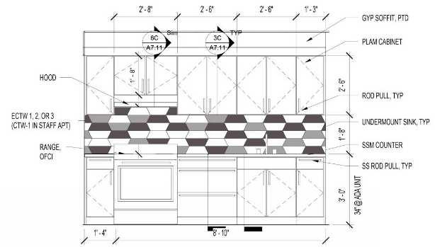 • Developed various project specific construction details including millwork,tileinstallation,flooring,plumbing,specialtyceilingsystems, lighting, ADA, etc.