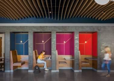 • Lead Interior Designer on several Higher Education projects including Food & Beverage, Lounge, Residential, Collaborative Work environments, and Learning spaces.