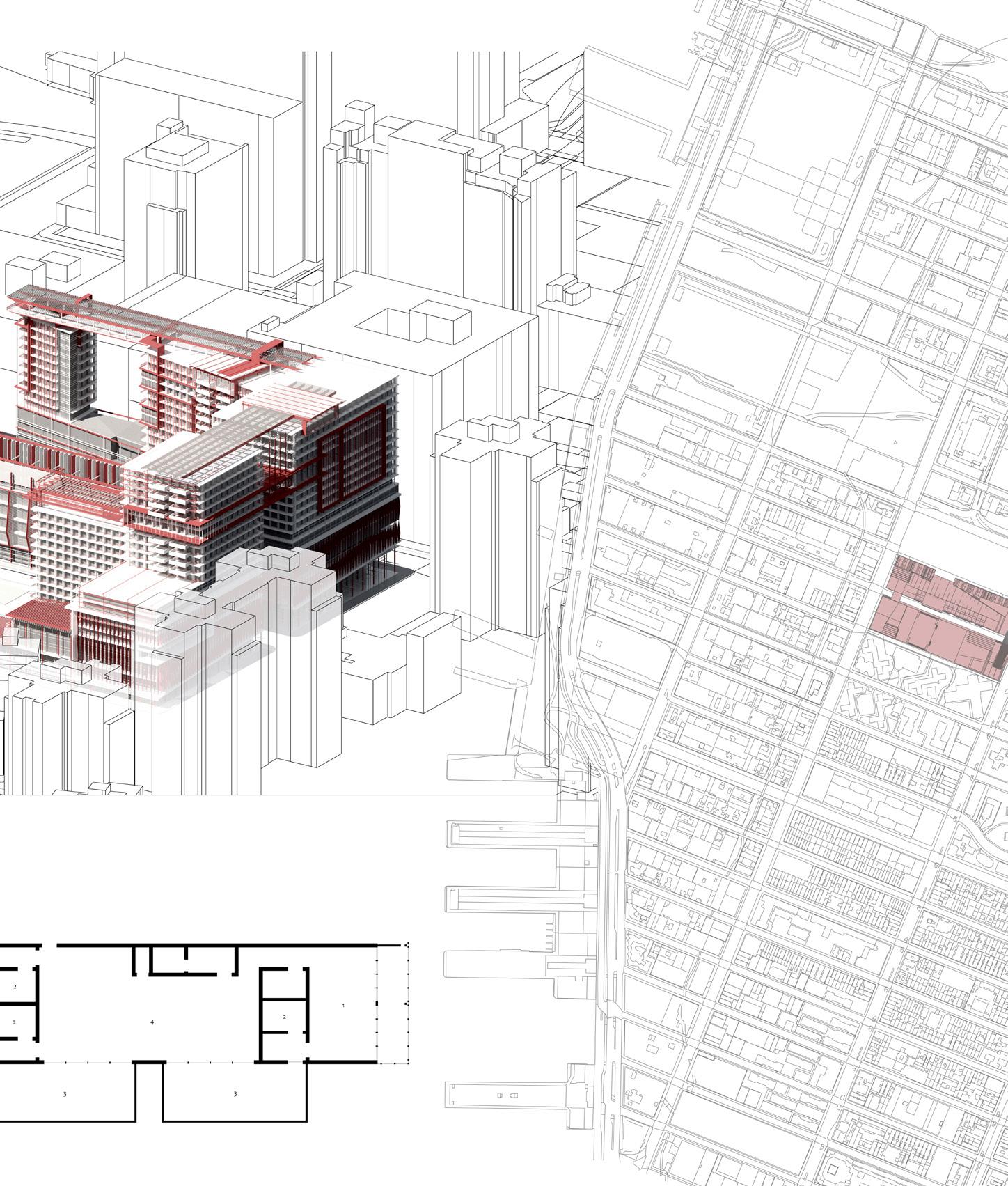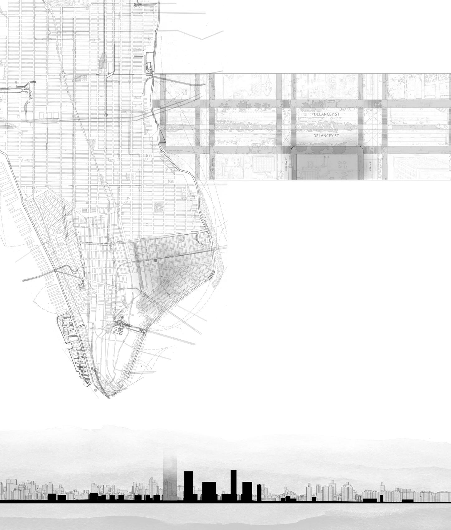 “Crossing Manhattan” deals with the phenomenological effects of movement in New York City. We analyzed how our site could serve as an epicenter for the city’s diverse forms of transportation. The site is directly above Delancey Street and Essex Street Subway Station, providing a unique opportunity to incorporate a station into the hotel’s ground floor to improve New Yorkers’ overall negative image of the subway. Therefore, there are spatial-like qualities similar to New York City’s Grand Central Terminal.