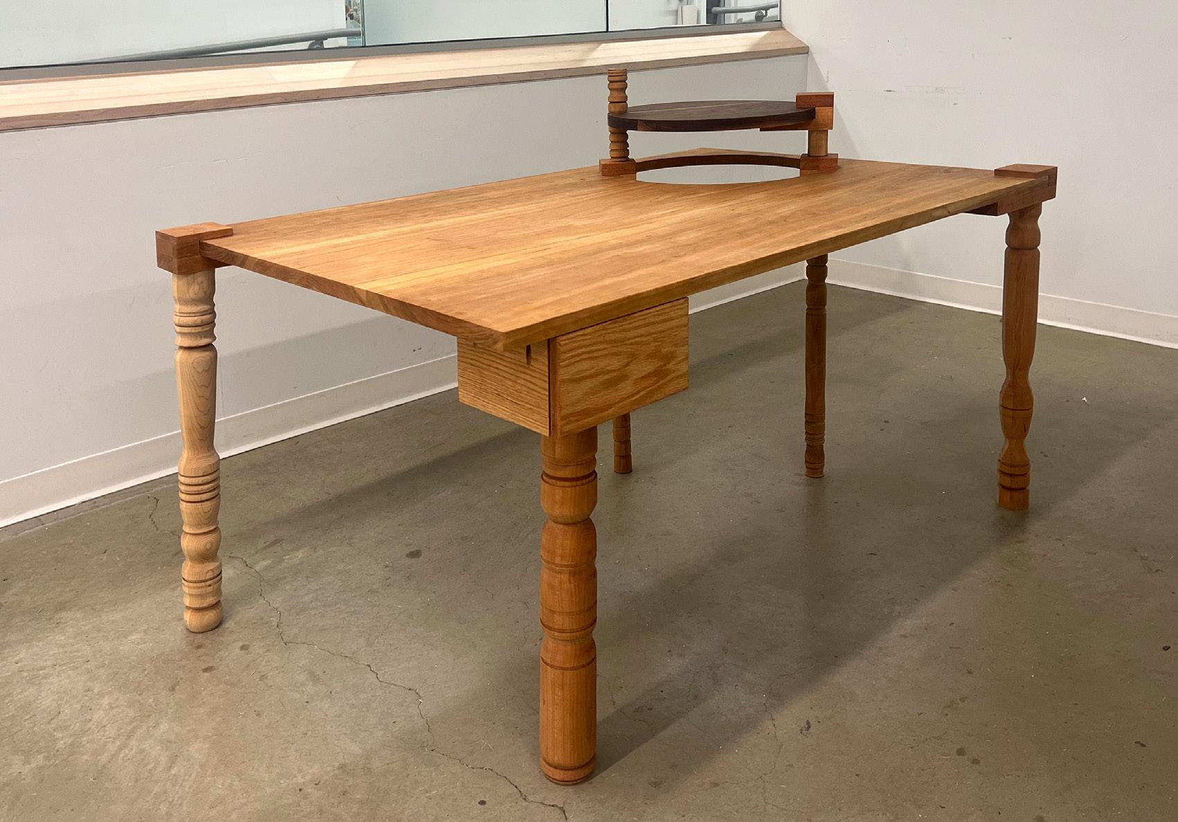 The Lumber Chimera was an exploration on how to use the golden ratio as a framework for dimensions and geometry. fundamental concept is visibly highlighted the raised circular form at one corner, forms the basis of the table’s proportions.