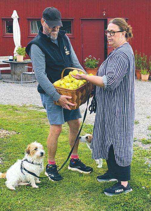 S IDA N 10 Carl och Anna-Karin Selling med en korg med Transparente blanche framför musteriet BILD: BO BÄCKMAN