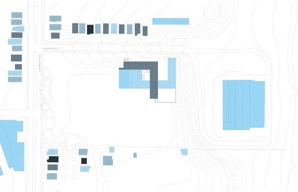 Located on N martin Luther King Dr, Milwaukee. The goal is to create a space within a space and to have the massing revolve around this space.