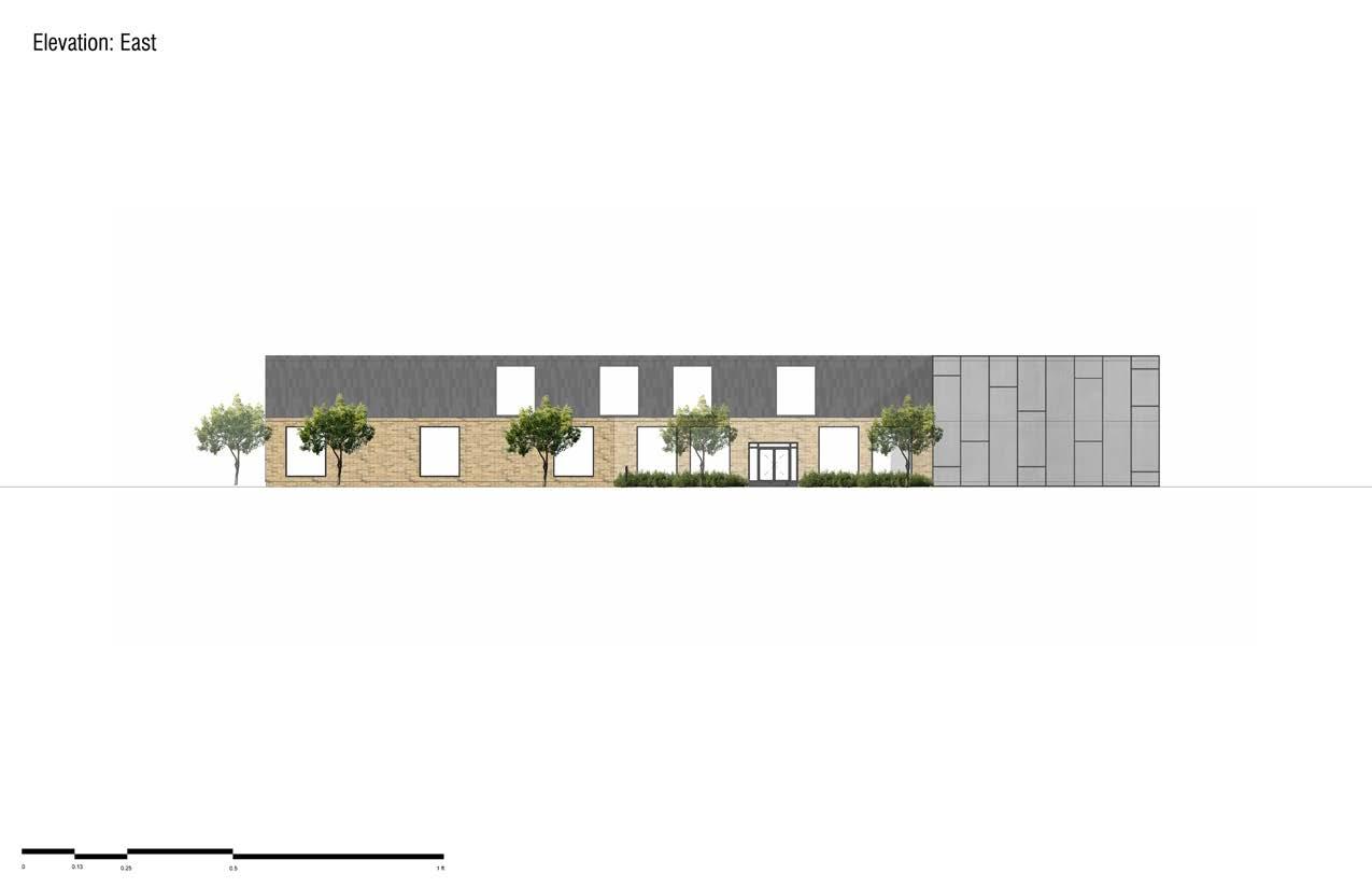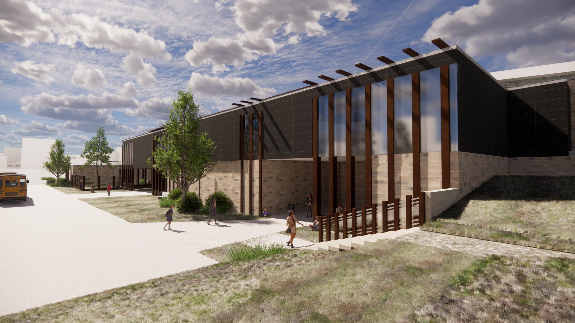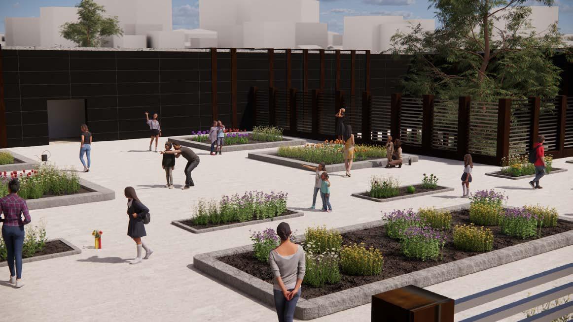 Concept: courtyard & garden area. Students will be able to wait for school to start, buses, and spend their recess in this courtyard area