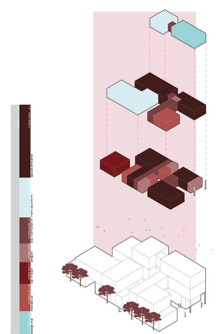 Inspired by adult animation: Pantheon...A UI (Uploaded intellegence) data center acts as a base for the people whose brain information has been uploaded into to the cloud. Their information is then stored into a hard drive that are stored in data banks in the server room. Features electric room, power rooms for the server banks, cooling room so the hard drives dont over heat, storage for extra equipment or maintanance and network room, for internet connection.