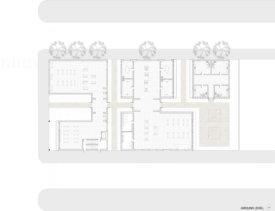 There are many access points onto the site and into the buildings, with a imaginary line that dissects the site down the middle, taking you through the building and from South point to the north point of the site