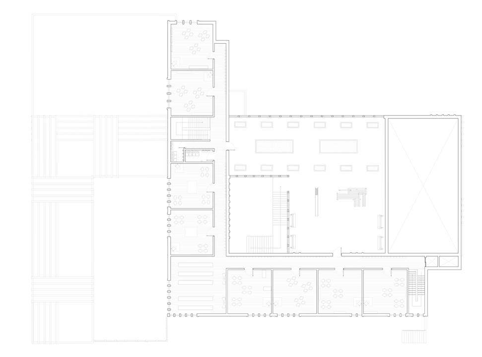 With the modular like system in a public market , with many similar programs exists in this structure. Features restuarants, meat/produce section, bakery, dessert places, and a cafe that acts a seperate location from the market, but is still included in the market.