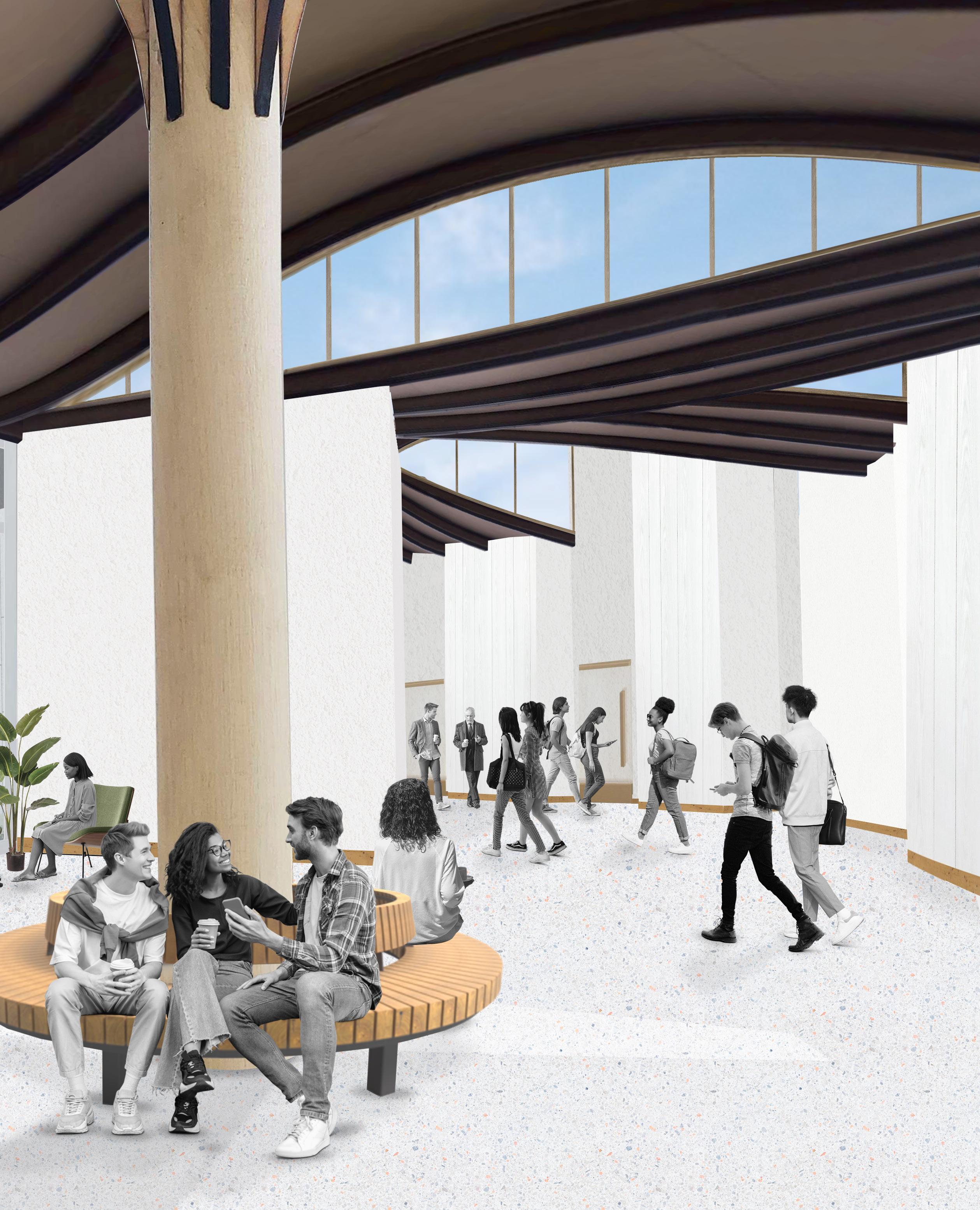 By using the forest as an overarching idea for the project, our mission was to create a space that allows students to thrive. This central concept helped us to prioritize growth, exploration, and sanctuary through design, guiding every aspect of the project, including form, materiality, quality of light, and more.