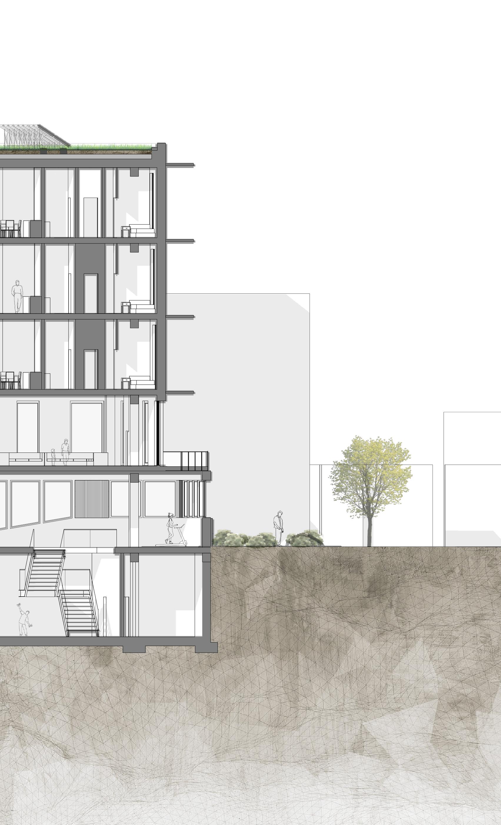 Orchard Arts Exploration School is a school for music, arts, and making, for grade 6-12 students in the Crossroads neighborhood of Kansas City, Missouri. Inspired by the city’s recent initiative towards increasing the city’s urban tree canopy, the project uses the concept of forest life to instill a sense of growth, exploration, and sanctuary for students. Ultimately, this project aims to support a dynamic environment where students can immerse themselves in creativity and nature, fostering a unique educational experience rooted in the natural beauty and innovative spirit of Kansas City.