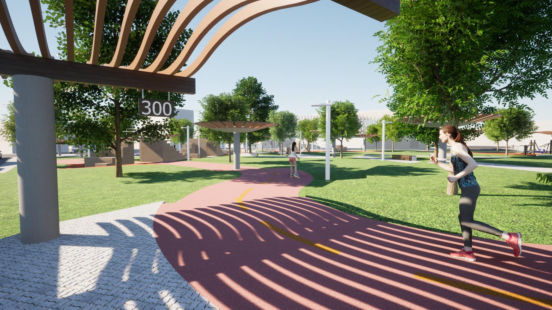 El tema general de este proyecto de fin de carrera fue la desarticulación y la interseccionalidad en Santurce. Usando este tema, se decidió utilizar el deporte como un espacio conector y catalizador social. Después de una investigación se descubrió que la mejor manera de crear conexiones era conectando con la vivienda próxima y unir espacios de deporte organizado con el no-organizado. Para lograr esto se mezclaron deportes como el basketball, el baseball y el ciclismo con espacios para el parkour y skating. Se dejaron estas áreas en el centro creando una conexión visual y peatonal entre la Ave. Ponce de León y la Fernandez Juncos y se crearon dos edificios en las esquinas. El más cercano a la Ponce de León es una tienda y taller de bicicletas, mientras que el otro es un complejo de fisioterapia que también incluye un cuartel de policía para la seguridad en el parque.