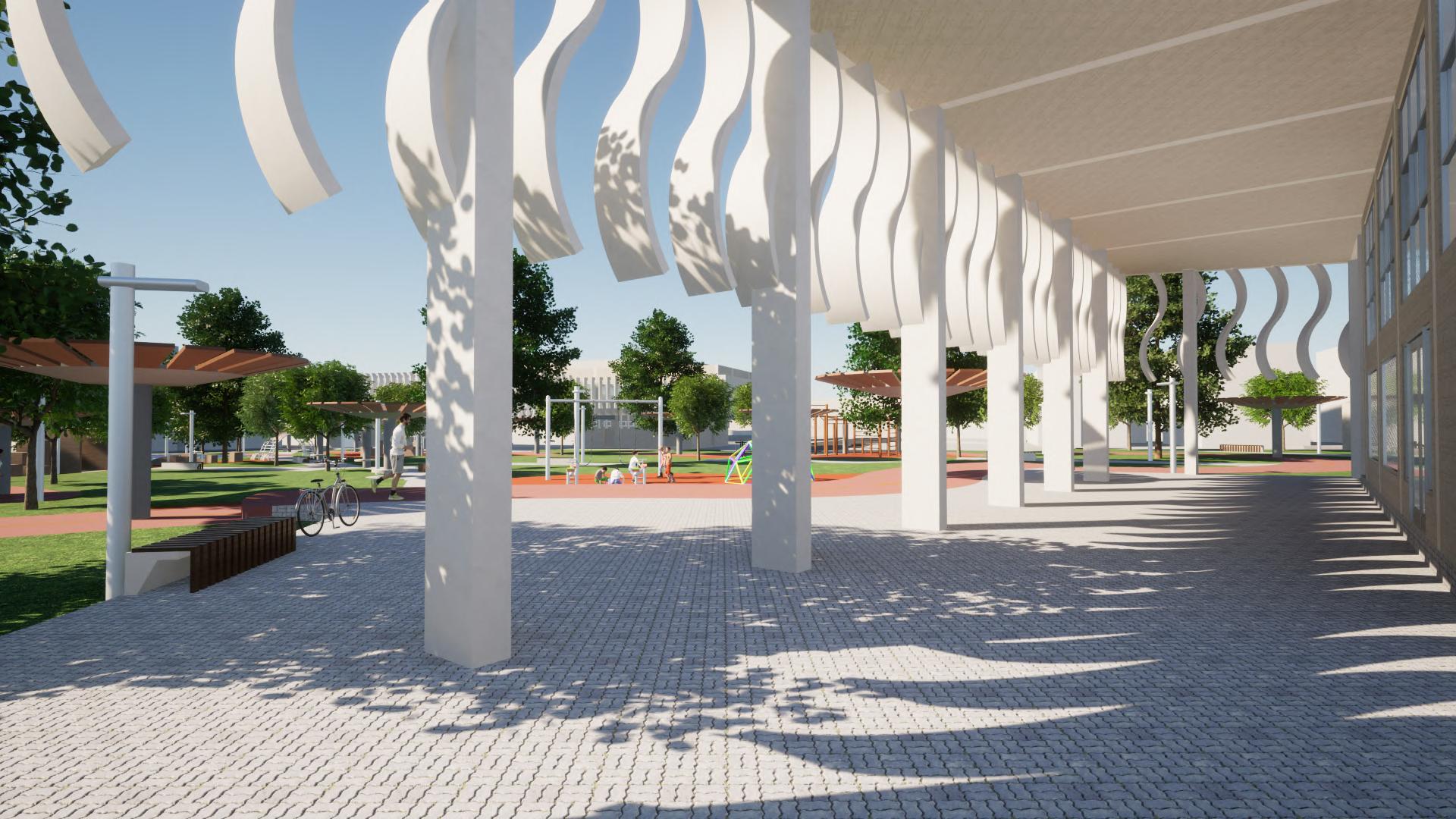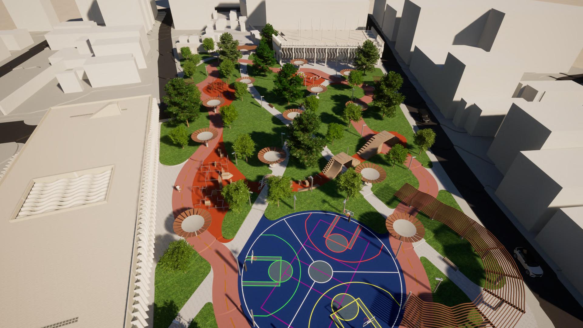 The general theme of this dissertation was the desarticulation and intersectionality in Santurce. Using this theme, sport was chosen as a connecting space and a social catalyst. After an investigation, it was found that the best way to create connections was to be aware of nearby housing and mix organized sports with unorganized ones. Sports like basketball, baseball and cycling were mixed with spaces for parkour and skating to achieve this. These spaces were left in the central part of the lot to create visual and pedestrian connections between Ave. Ponce de León and Ave. Fernandez Juncos. Two buildings were also designed on the corners of the lot, the one close to Ave. Ponce de León is a bicycle store and workshop and the other one is a physiotherapy complex with a small police station for safety in the park.
