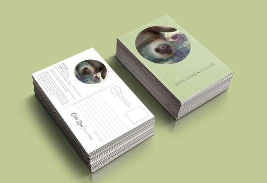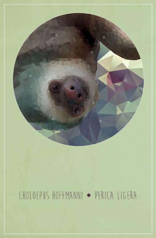 Ilustración digital poligonal oso Perezoso, diseño colección 6 tarjetas postales (proyecto personal), Se vendieron en La Traviata, Tienda del Teatro Nacional.