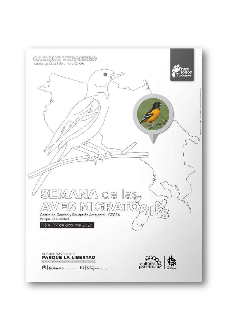 1. Dibujos para colorear: Semana de las Aves Migratorias, Área Ambiental - Parque La Libertad.