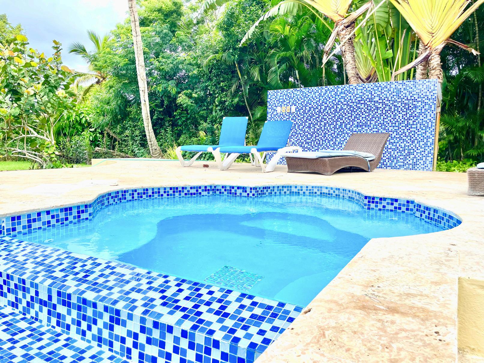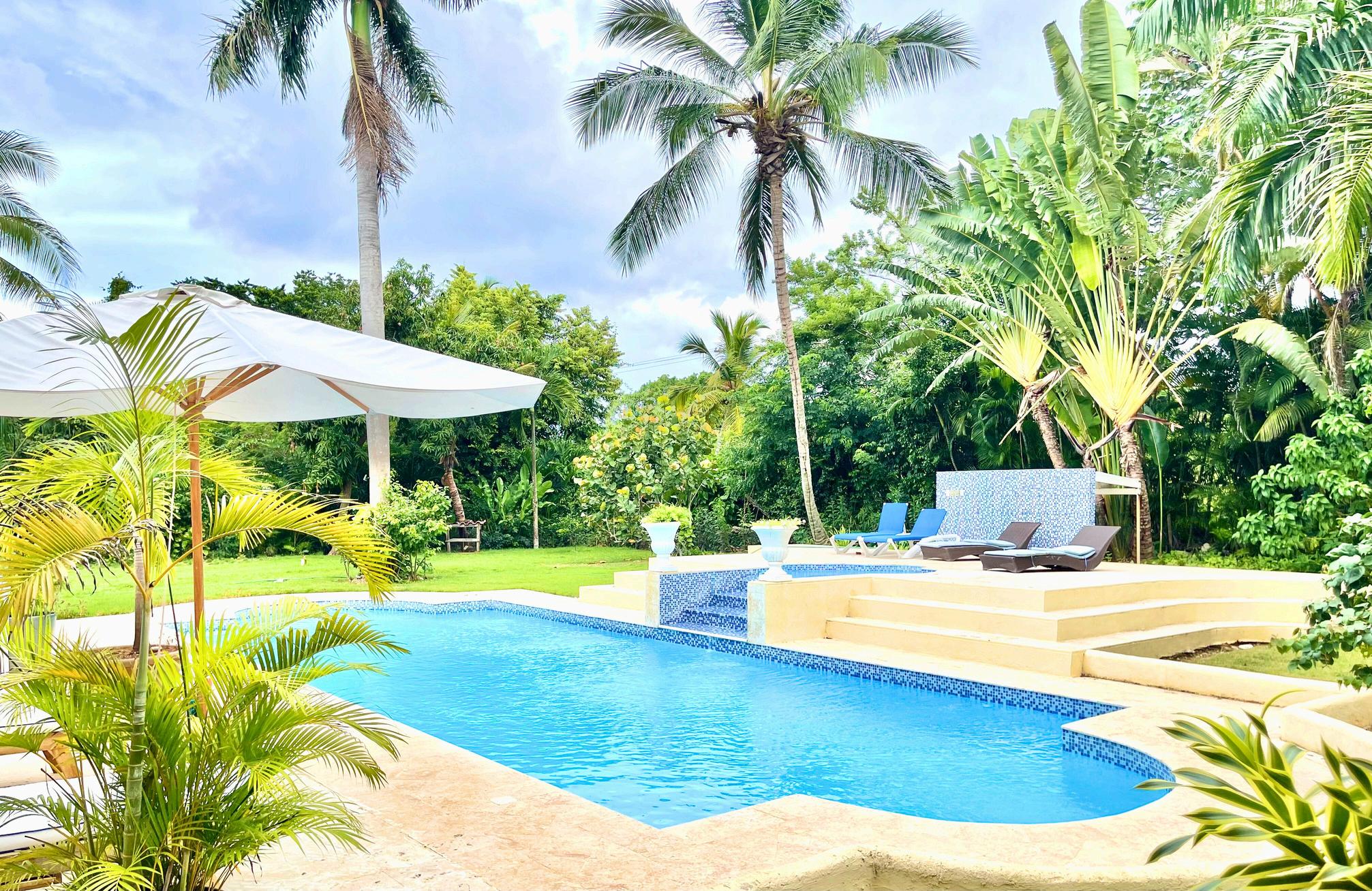 The stunning outdoor area features a private pool and Jacuzzi, creating an idyllic setting for relaxation and entertainment. exquisite piece of paradise.