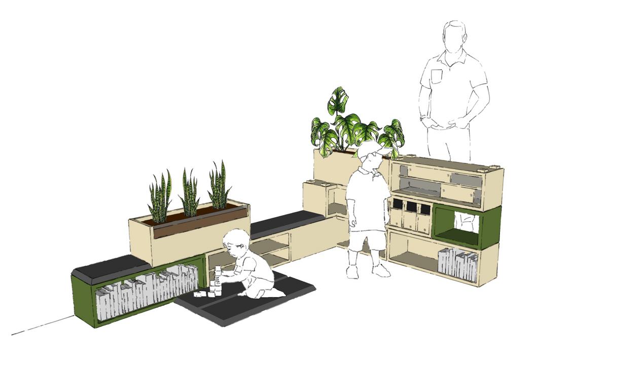 Dit ontwerp zorgt ervoor dat kinderen interactief met natuur bezig kunnen zijn door middel van leren en spelen. Door de verschillende modulaire blokken te stapelen is er voor iedere ruimte een passende opstelling.