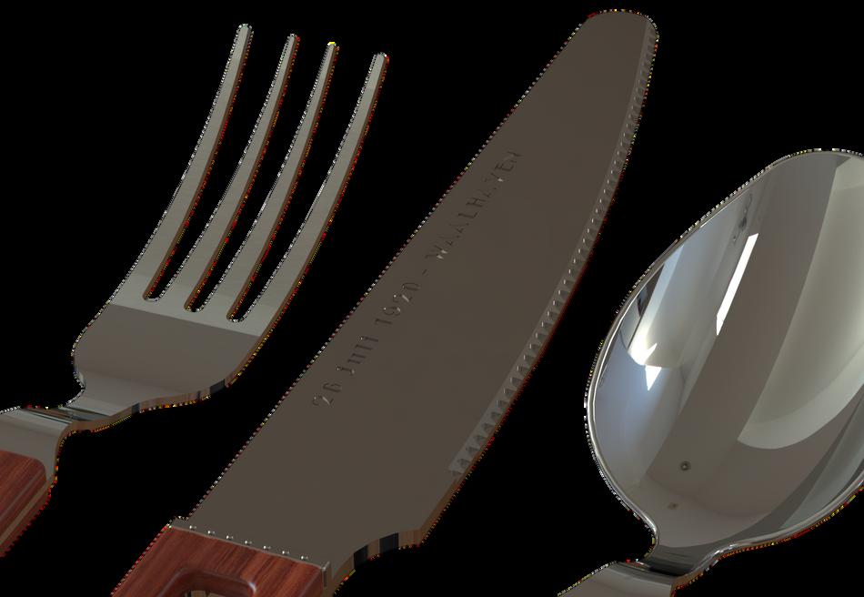 Het bestek is op die tijd geïnspireerd met als grote inspiratiebron een oude Fokker F.II. Zo zijn er details van de vleugels terug te vinden in de handvaten en op het mes.